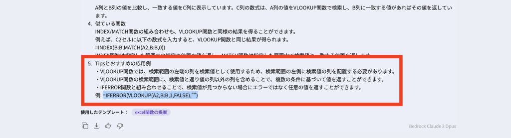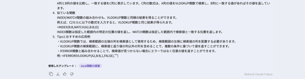 Excel関数の提案」を行うテンプレートでは、関数を聞き出すことができます。