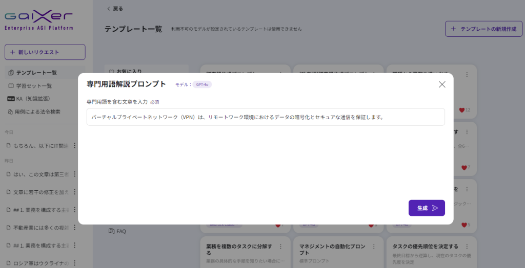 今回は、「専門用語解説プロンプト」テンプレートのデモンストレーションを紹介します。