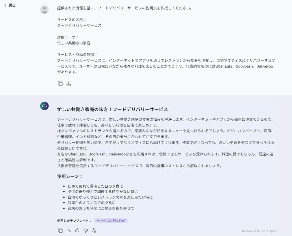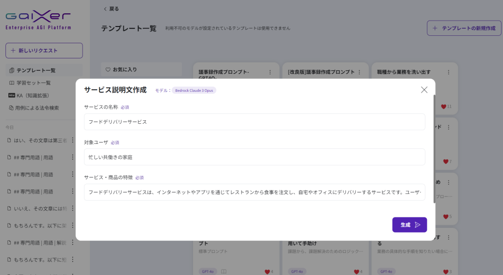 今回は、「サービス説明文作成」テンプレートのデモンストレーションを紹介します。