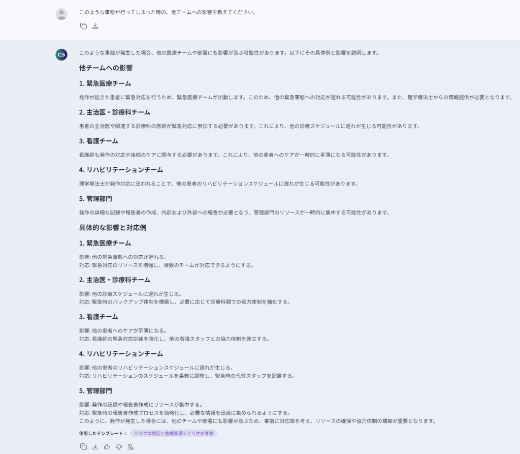 今回の場合は、「他部門」「部署」へ及ぶ影響を出力してくれました。