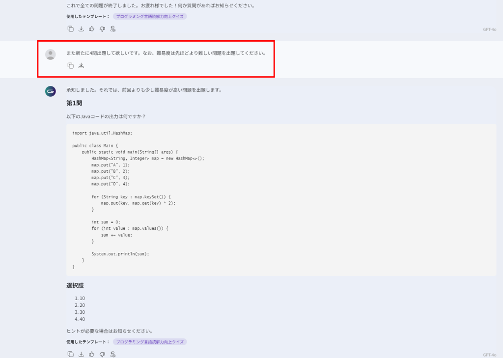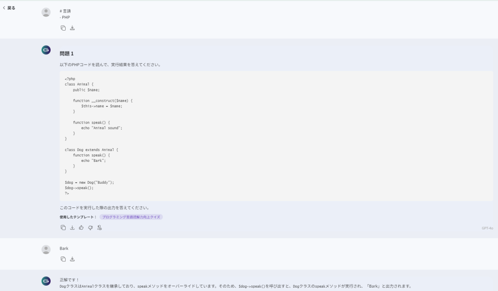 「プログラミング言語読解力向上クイズ」を行うテンプレートを活用することで、プログラミング言語の読解力を向上させるための効果的な学習環境を提供できます。また、新しいプログラミング言語やフレームワークを学ぶ際の入門教材としても使用できます。