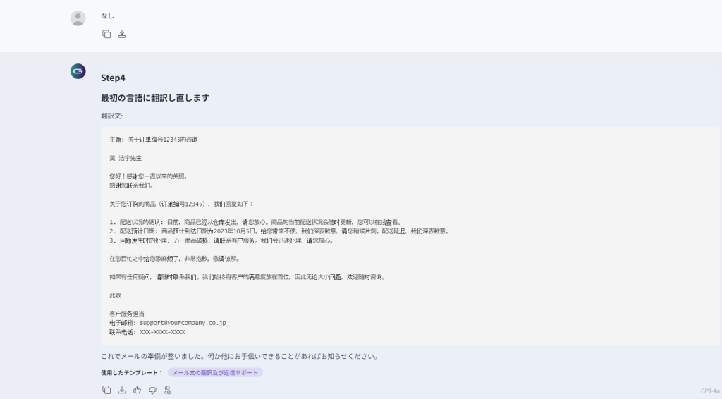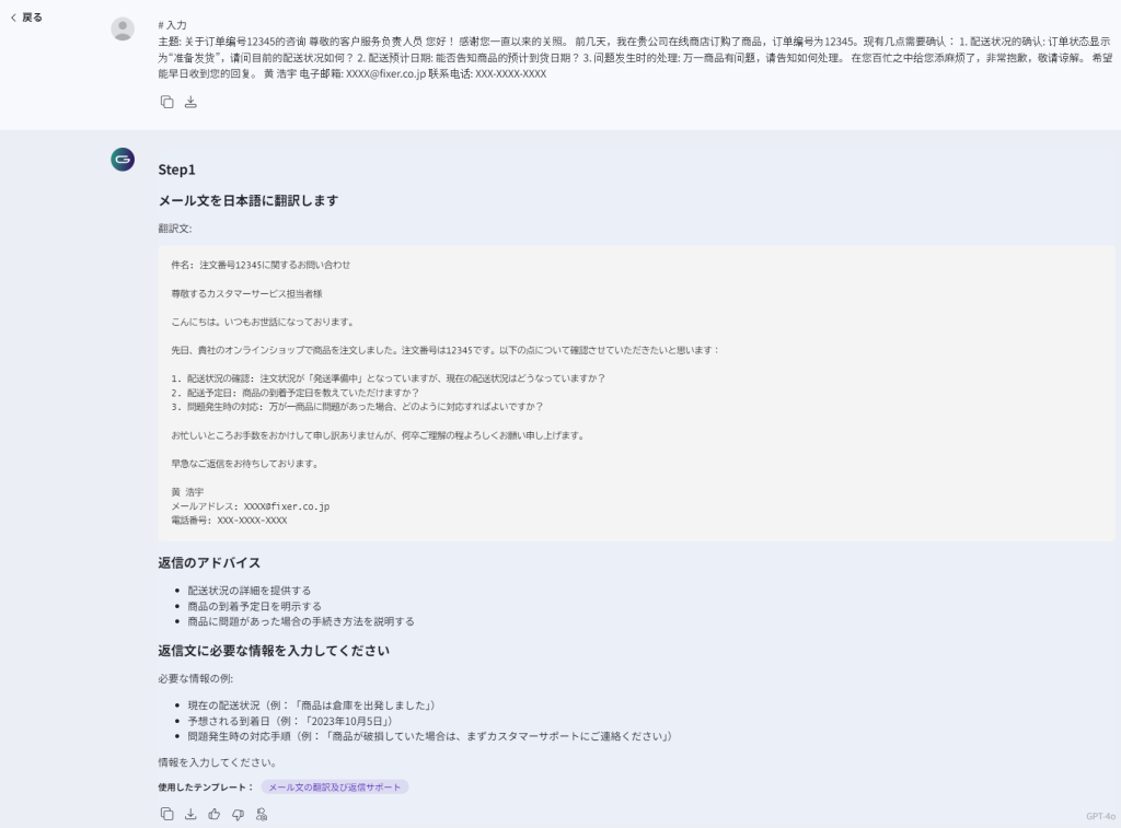 今回は、「メール文の翻訳及び返信サポート」テンプレートのデモンストレーションを紹介します。