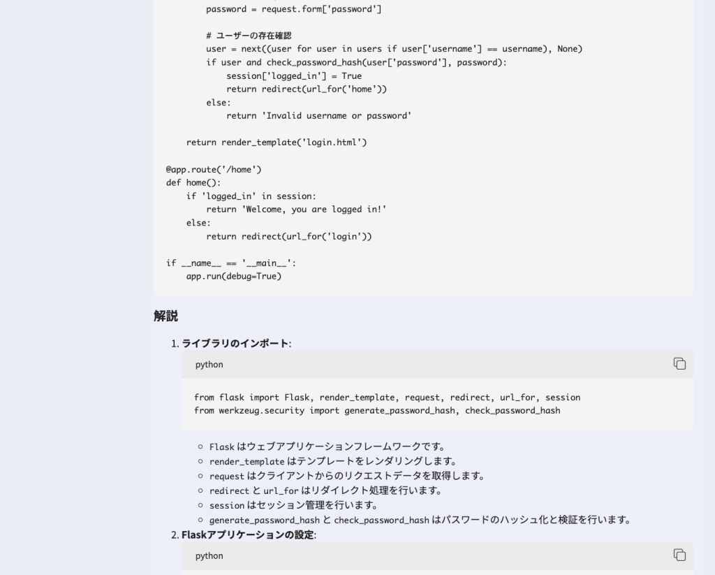 すると、入力した内容などを基に以下の内容を出力をしてくれました。