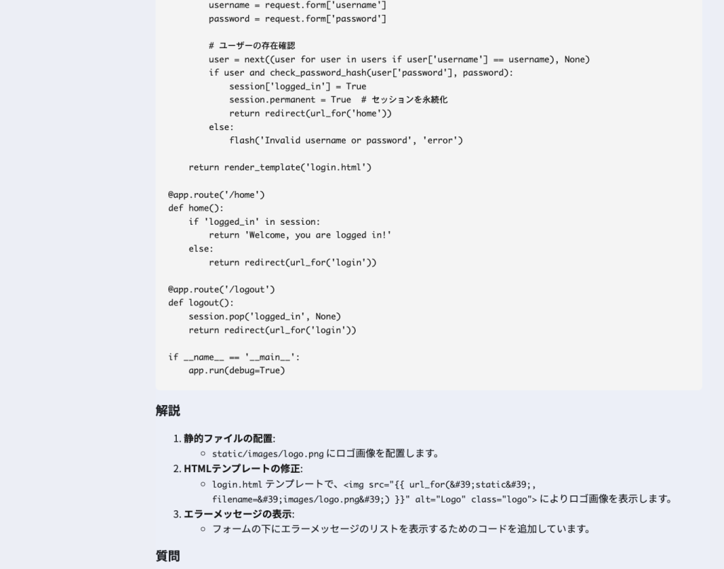試しにこのように入力しましたが、入力したコードに基づいた追加や変更箇所の提案を出力をしてくれました。