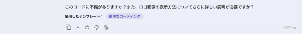 また、現状のコードやお手本のコードを入力することで、そのコードに基づいた提案を行ってくれます。