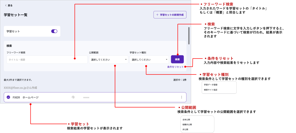 学習セットの検索