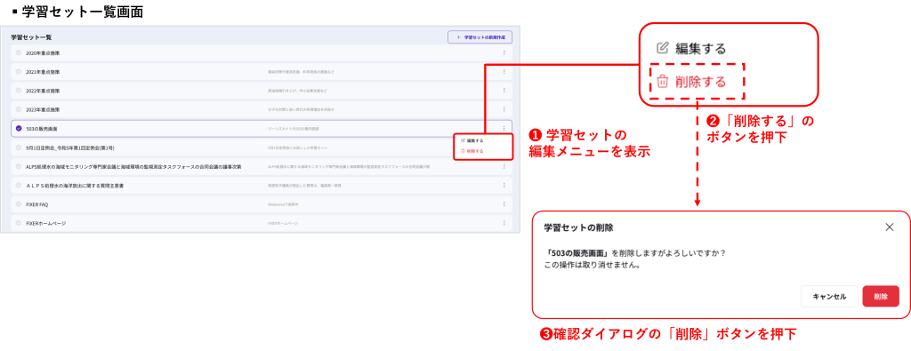 学習セットの削除