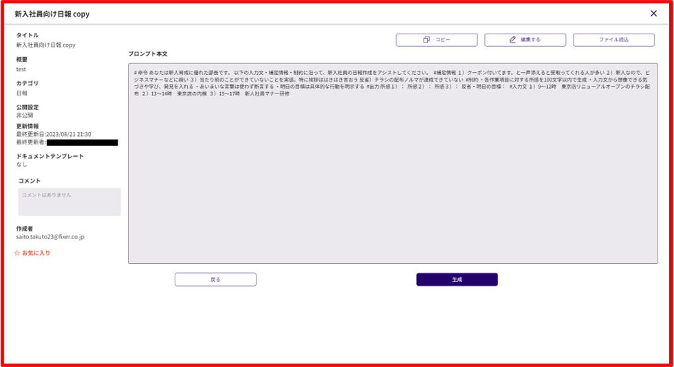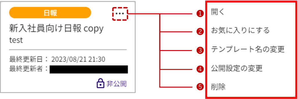 各プロンプトテンプレート右上の「…」ボタンを押下することによりサブメニューを開くことができます。